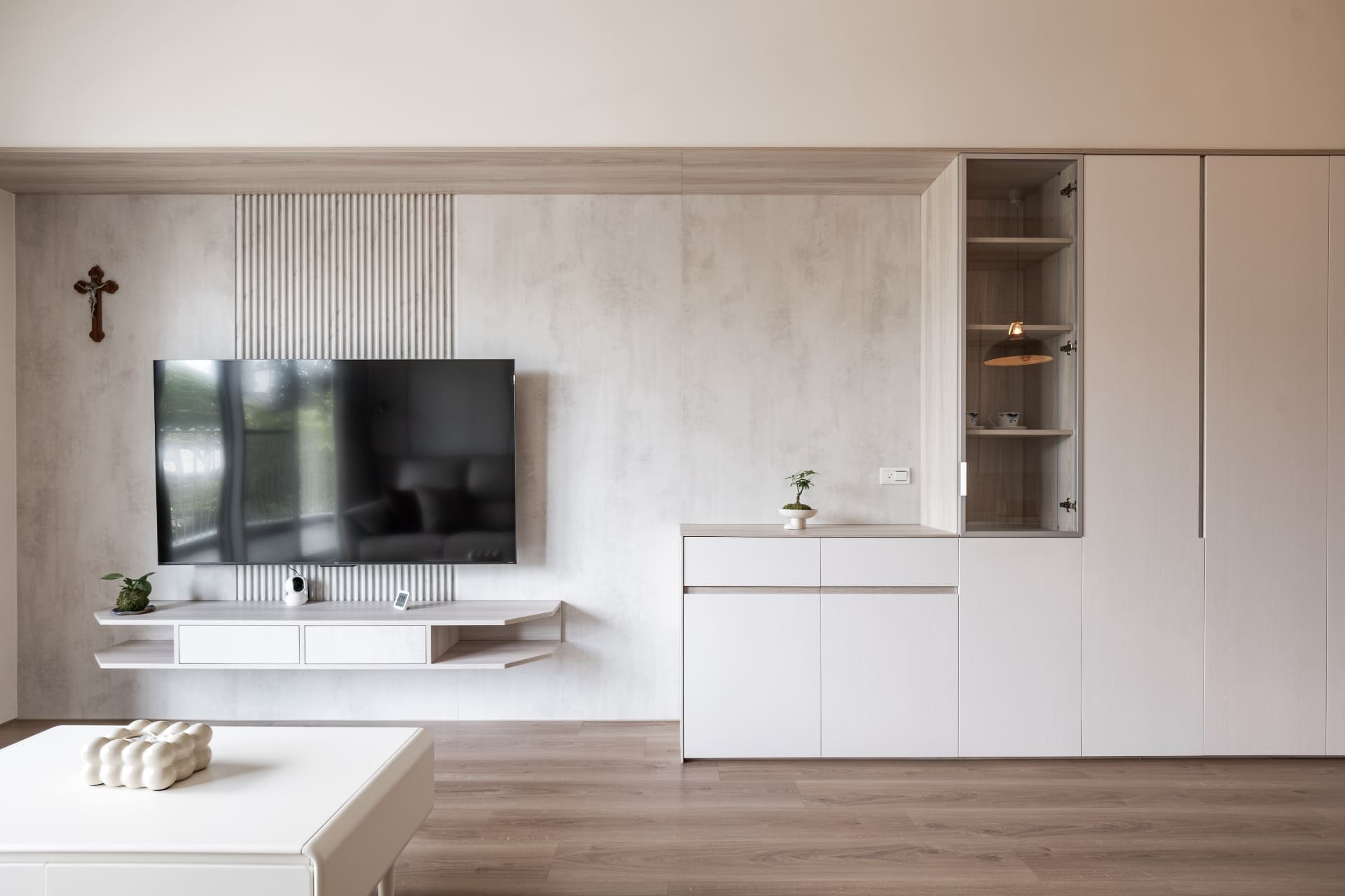 白與木的對話,讓空間變得安靜,卻不單調。